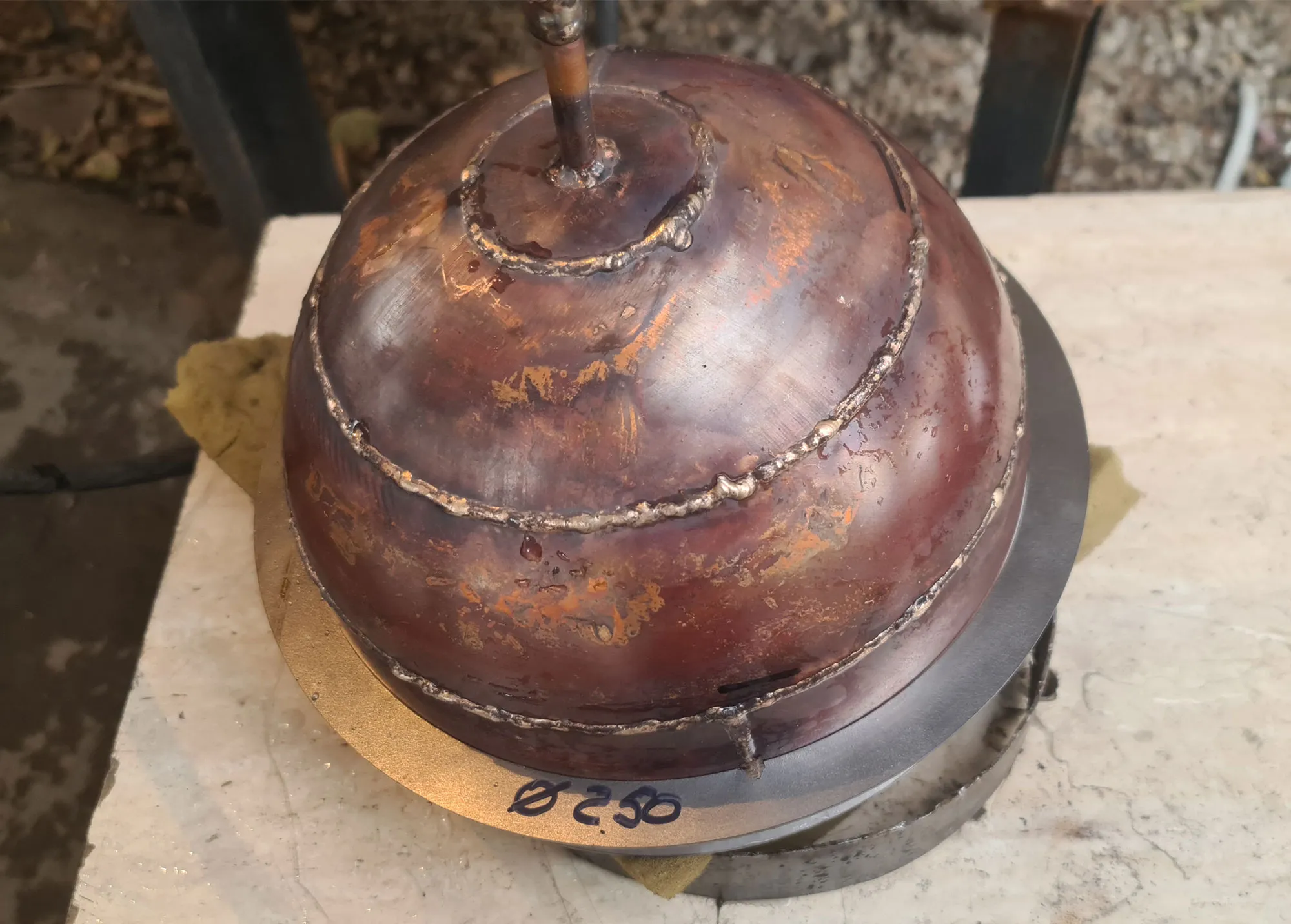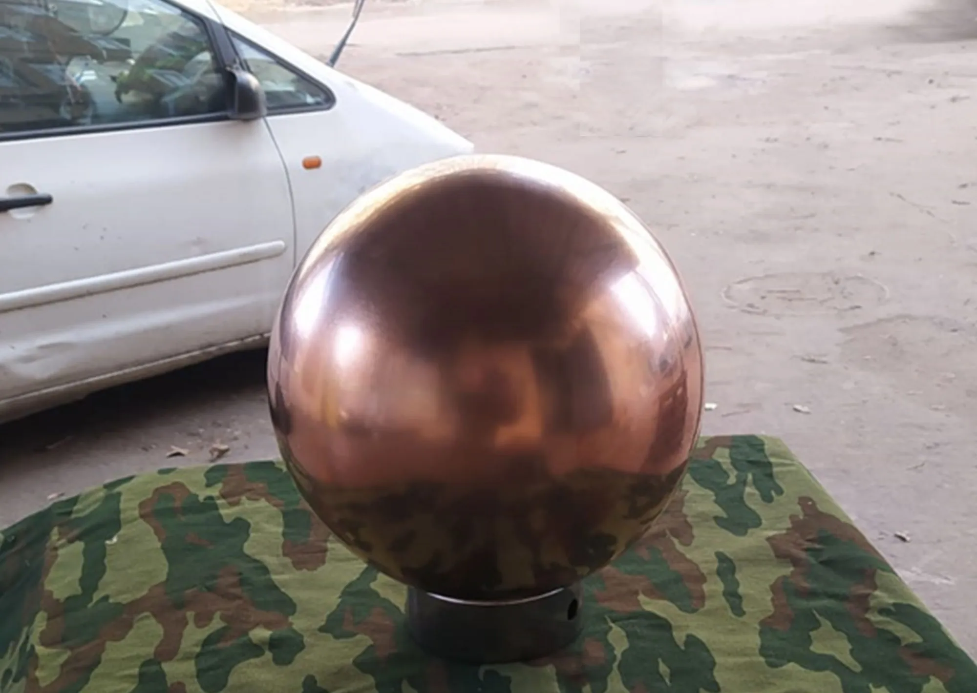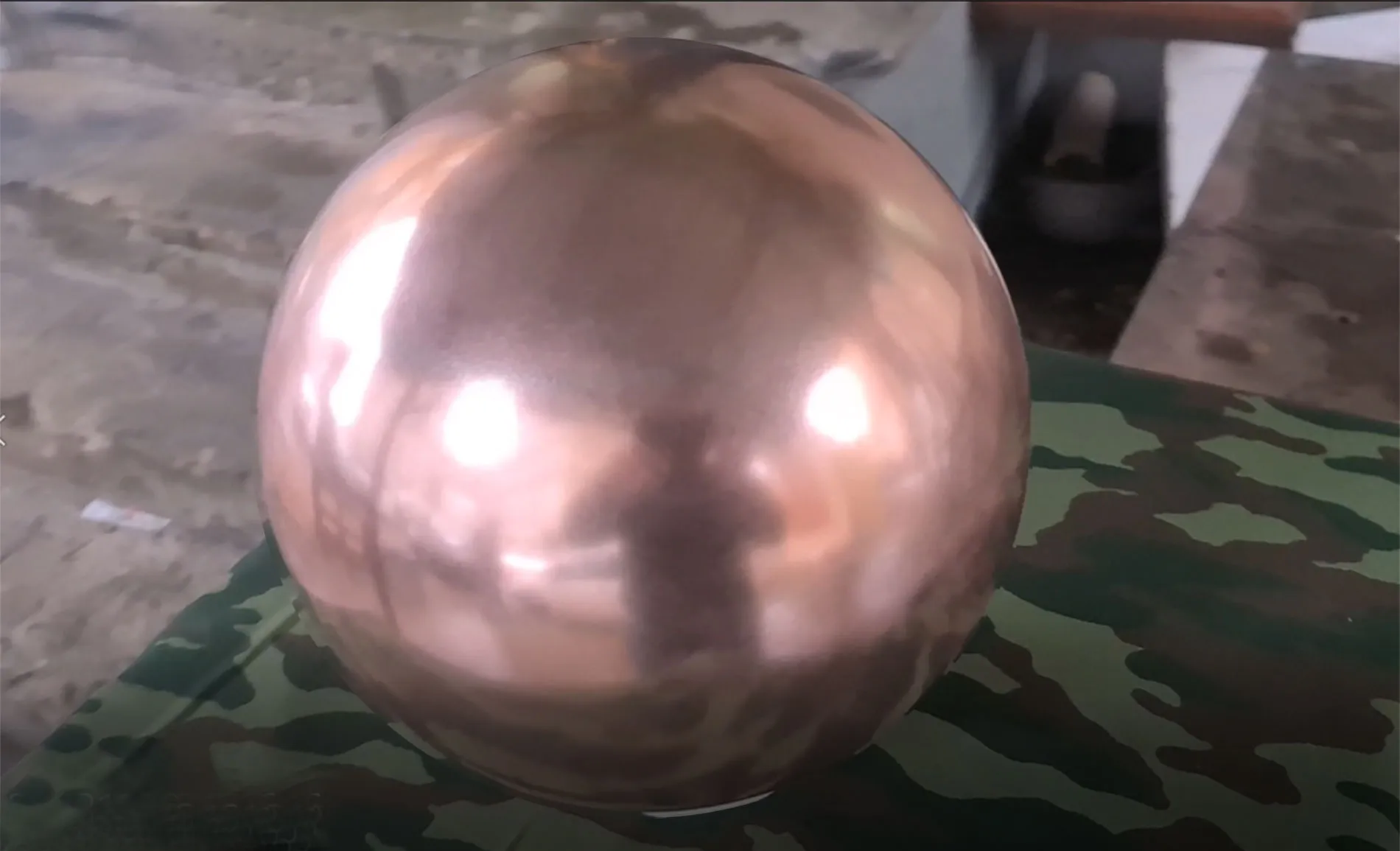 Медный шар представляет собой геометрически правильную сферу из листовой меди марки М1 изготовленный с поразительной точностью по диаметру, 250 миллиметров причём вручную. Каждая медная сфера тщательно нами полируется, чтобы достичь матового или зеркального блеска. Медный шар - это идеальное средство от стресса, которое лучше держать перед глазами, дома или в офисе прямо на письменном столе.