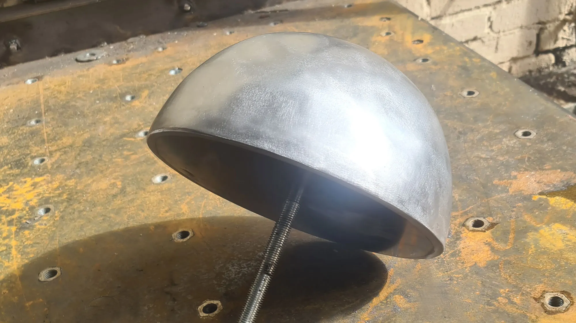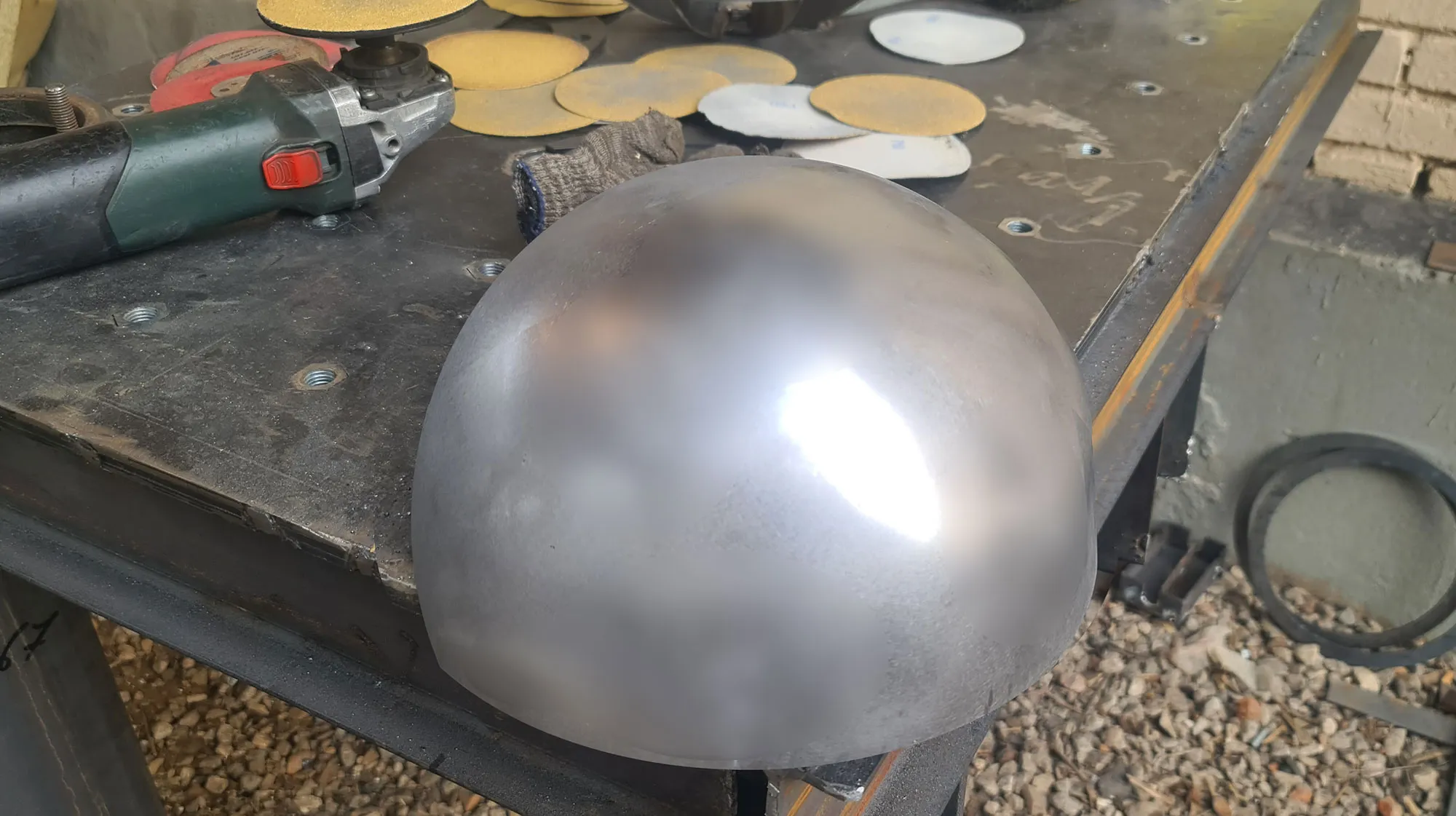 Изготовление металлической полусферы требует профессионального подхода, работать с углеродистой сталью достаточно сложно даже в специализированной компании и на современном оборудовании. Вручную же изготовить полусферу с толщиной стенки 6 миллиметров из обычной листовой стали требует немало времени и существенных трудозатрат.