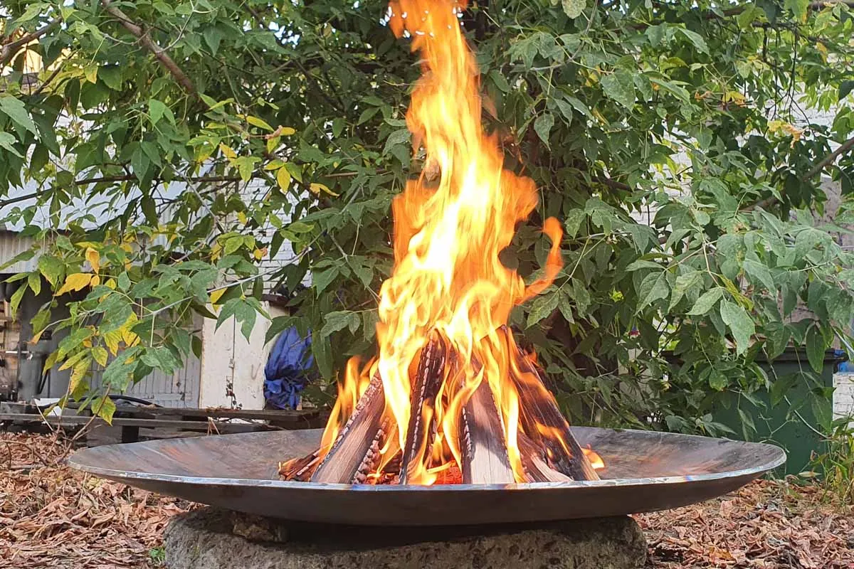 Кострище - металлическая чаша для огня. Диаметр чаши 92 сантиметра. Толщина метала 6 миллиметров. Глубина металлической чаши 12 сантиметров. Поставляется чаша напрямую со склада завода производителя.
