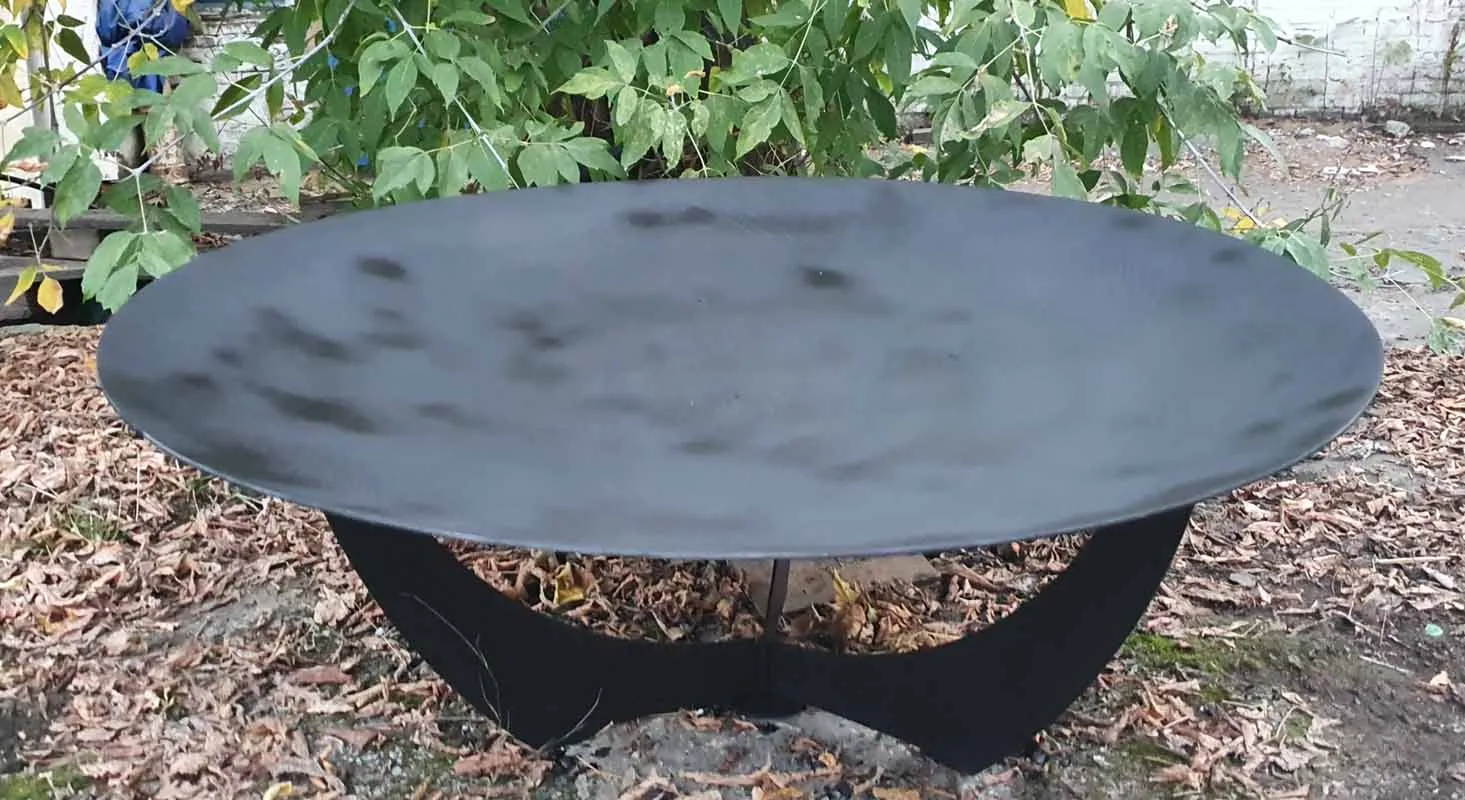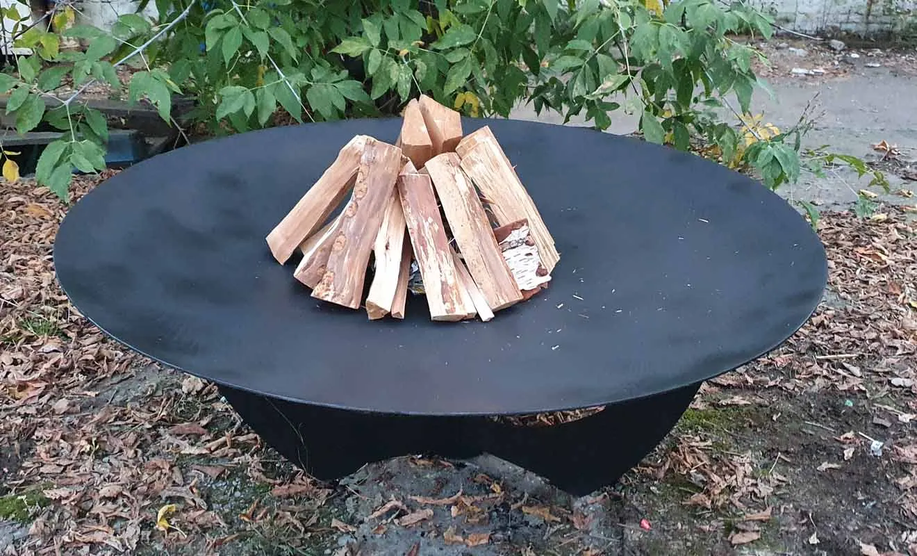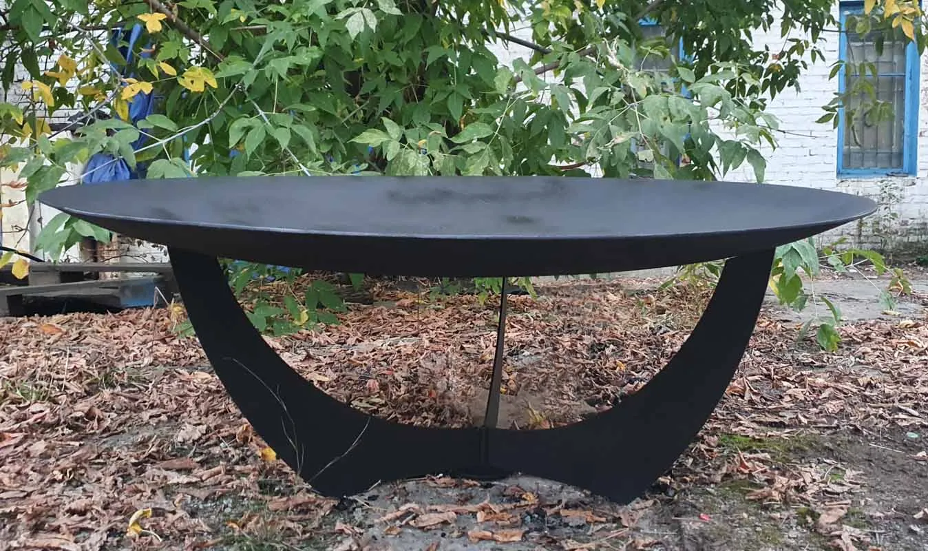 Диаметр костровой чаши 92 сантиметра, глубина чаши 10 сантиметров, толщина метала 6 миллиметров. Материал изготовления - конструкционная сталь марки Ст3.