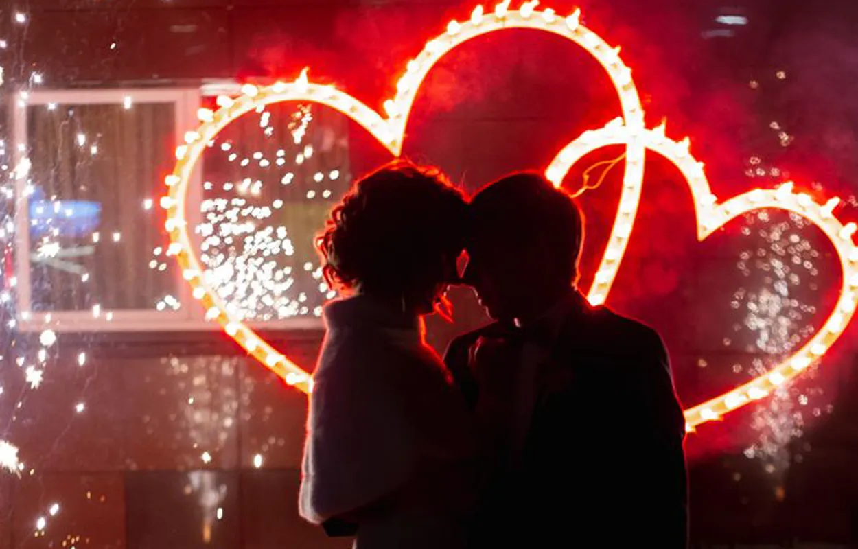 Огненный фейерверк горящие сердца — Омск